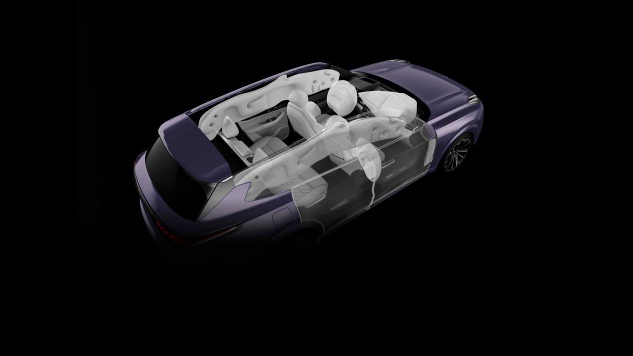 车内防护同样秉持“安全无差异”理念,确保每一位乘员都能获得全面保护。其搭载同级唯一的前后热成型钢纵梁结构,保持前后纵梁强度一致,避免因结构设计不均留下安全隐患;后排座椅背部使用防穿刺高强度钢板,有效保护后排乘员;2550mm超长保压侧气帘展开后覆盖A柱至D柱,为前后排乘客提供全面侧方防护;副驾配备国内首创特制狐首型安全气囊,在偏置碰撞时对头部的承托保护更全面,降低高伤害风险。