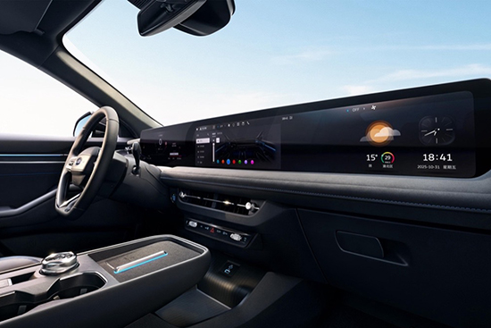 内饰整体布局与现款保持一致,采用贯穿式27英寸4K显示屏,搭配12.3英寸全液晶仪表,科技氛围浓郁。空调出风口下方新增一排实体按键,中控台底部改为“悬浮岛”结构,前部还增加了手机无线充电板,空间感和实用性明显提升。