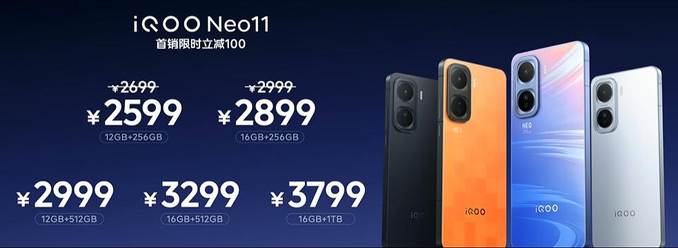 售价方面,iQOO Neo11首发立减100元,12GB+256GB版定价2599元;16GB+256GB版定价2899元;12GB+512GB版定价2999元;16GB+512GB版定价3299元;16GB+1TB版定价3799元,即日起正式开售。