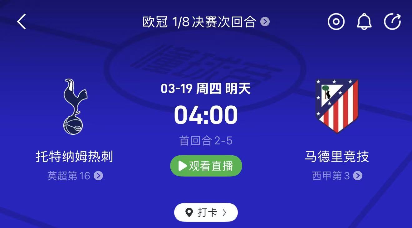 🔹 周三009 欧冠:托特纳姆热刺 vs 马竞(04:00)
