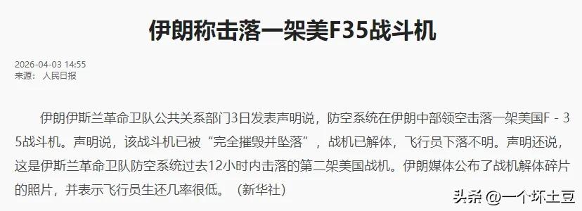 到了今天,伊朗再放重磅声明:过去 12 小时内,第二架 F35 被击落,机身解体坠毁,残骸散落一地。