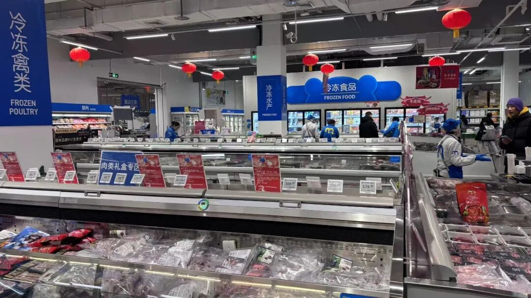 再从麦德龙四季青桥的“胖改”店来看,店内在入口处摆上了春节对联等节日挂件。店内挂出“马上新鲜,麦向新年”的节日条条幅和红灯笼。