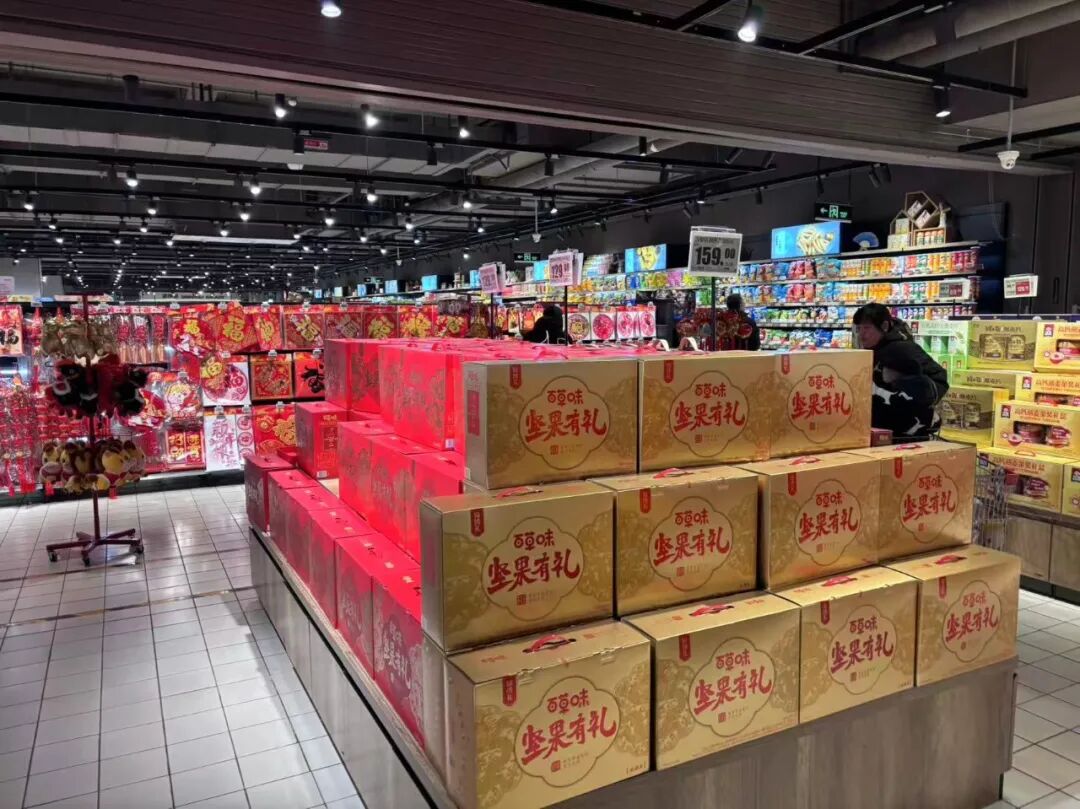 从北京区域来看,“胖改”店内也都早早上架了年货节商品,做起了礼盒堆头。