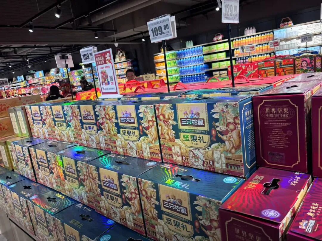 一位店内的消费者对《灵兽》称,“堆头很有年味儿,店内的礼盒看起来也比较漂亮和精致,当然价格也‘精致’,现在没有什么特殊情况的话,比如应急,基本不会选择在店内购买礼盒商品。”