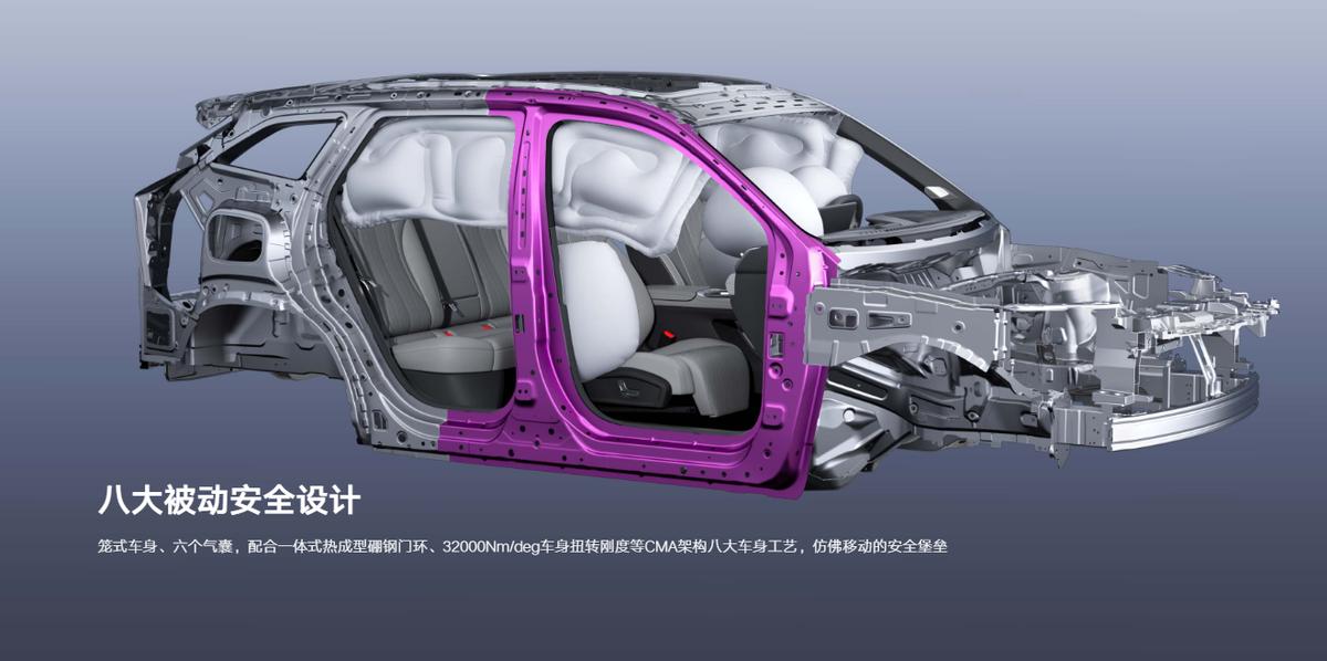 在安全性能上,第四代博越L采用了笼式车身结构,拥有同级最大的32000N·m/deg车身扭转刚度。车身关键部位使用了1500MPa一体式热成型硼钢门环等高强度材料,配合五横六纵的框架结构,进一步强化了车身与底盘的融合。主动安全系统依托5R1V传感器方案,毫米波雷达探测距离达210米,能够覆盖16类高频危险场景。