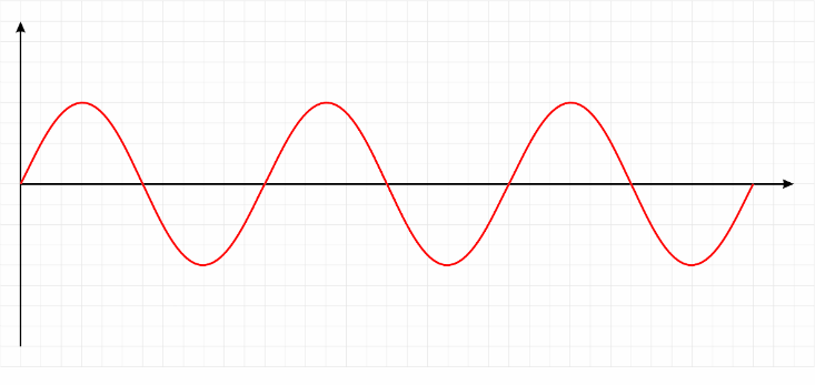 假如我们把简单的声音可以用如下图表示,横坐标是时间,纵坐标是震动的幅度。这个波形呈现出完美的周期性变化,说明它是一个单纯的音调,即正弦波。