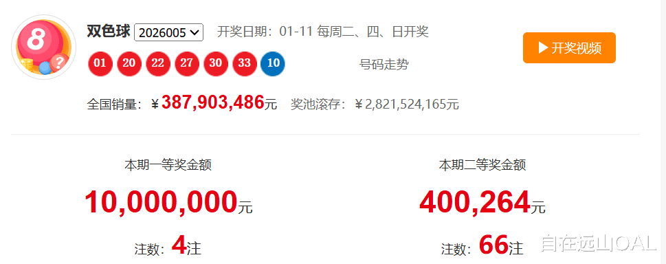 第2026005期双色球开奖号码红球:01、20、22、27、30、33,蓝球:10。这组号码看似随机,实则暗藏玄机。经过我对最近5期(26001-26005)数据的深度挖掘,发现了三个惊人的规律!