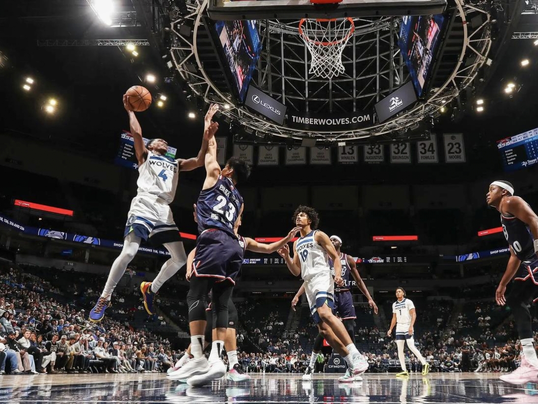 整场比赛下来 给小编的感觉就是,一支训练有素的军队再打一群游兵散勇,森林狼的替补拿球就传、跑位又快又准,每一秒都在利用球场空间;再看广州队,防守慢半拍,进攻时要么愣着等外援,要么传两下就慌了,完全跟不上人家的节奏。