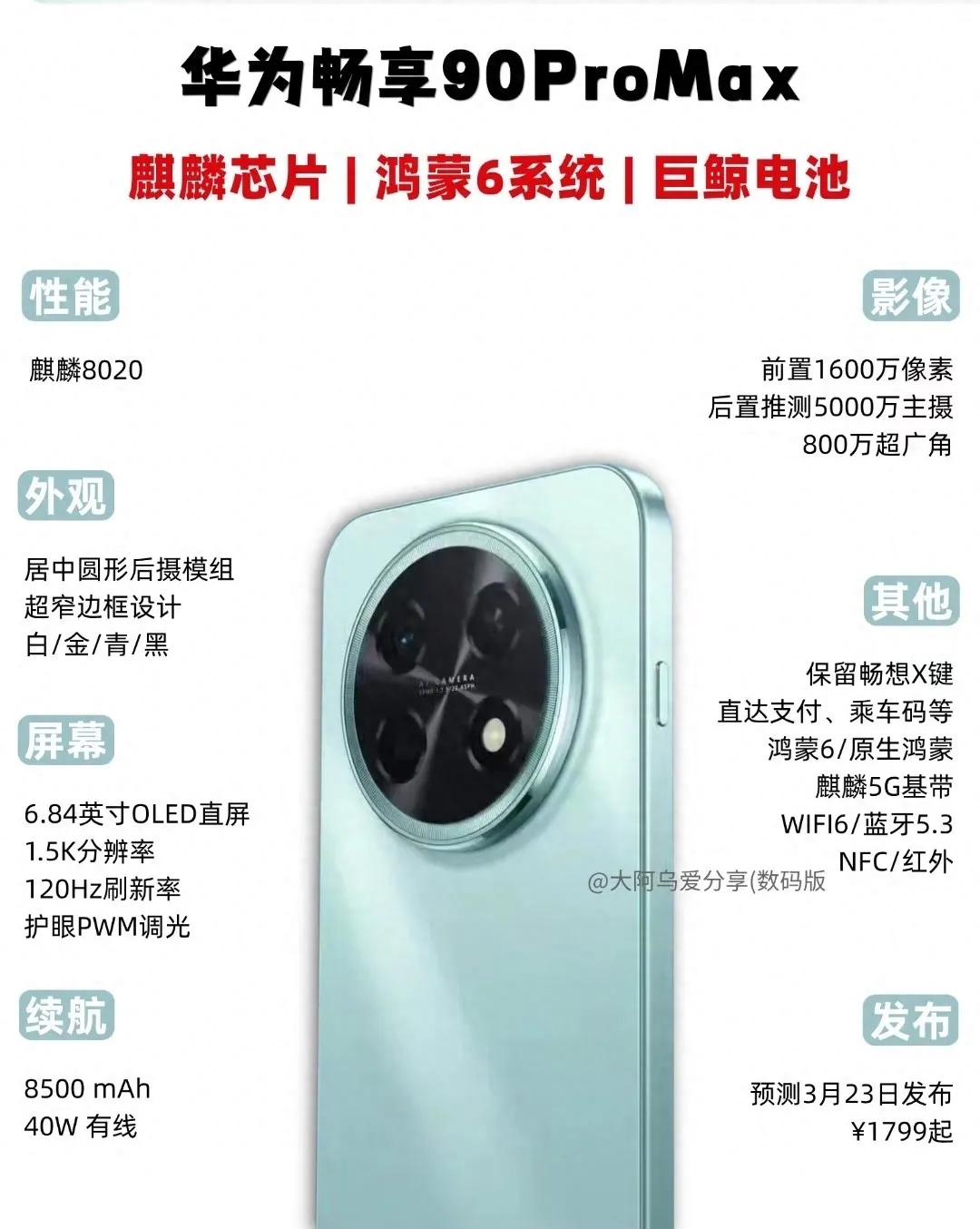 “出门必带充电宝”的尴尬,终于要被终结了!当手机厂商还在旗舰机上比拼影像算力时,华为却用一款千元机——畅享90 Pro Max,精准戳中了花粉最刚需的痛点:续航焦虑。这款新机不仅塞进了8500mAh的“巨鲸电池”,还首次在畅享系列用上麒麟8020芯片和鸿蒙6系统,更在外观设计上向旗舰看齐。