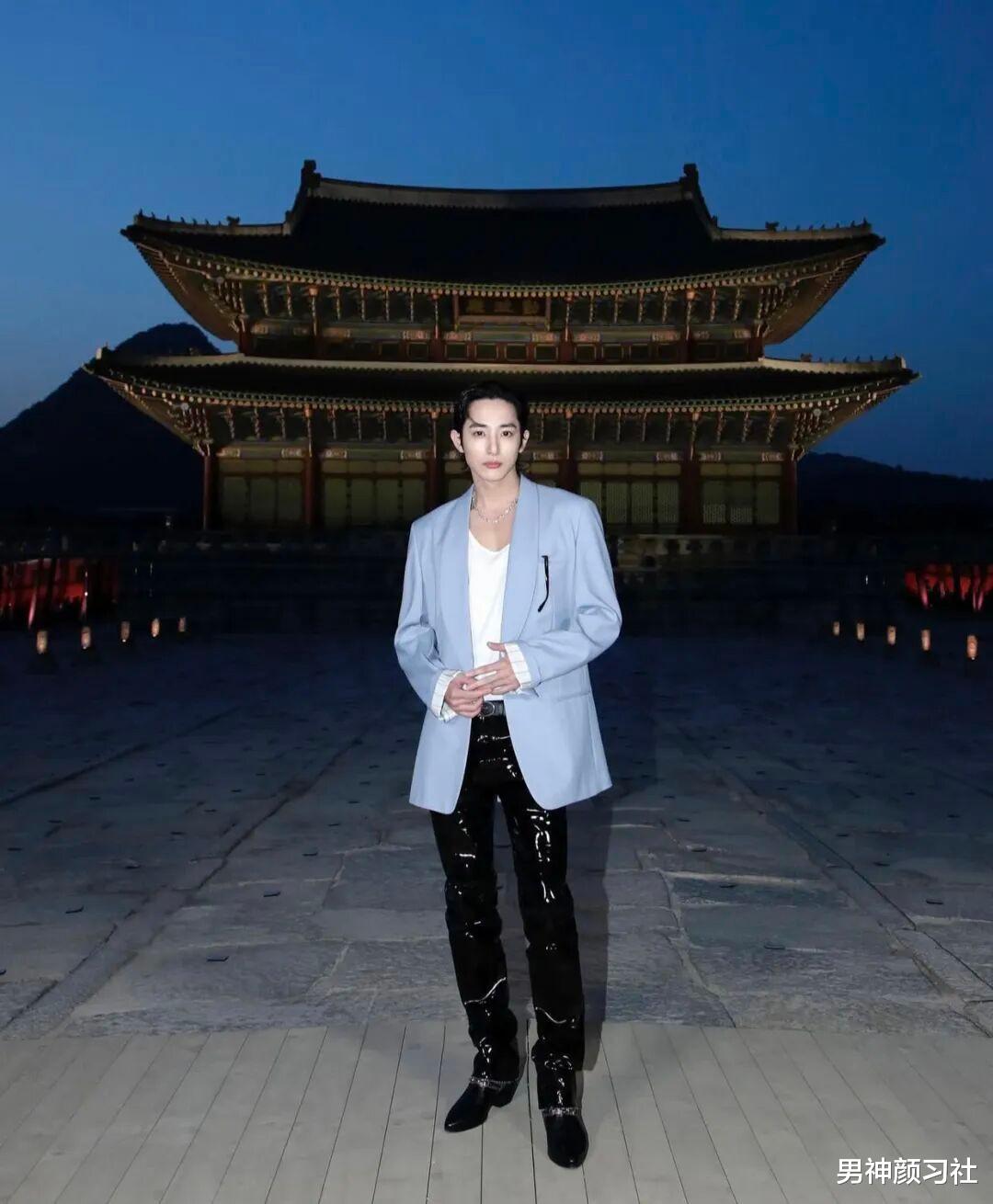 浅色系的西装照样是男生们在秋冬赢很大的利器,这件的颜色就十分温柔,很能让你看上去没什么攻击性。他在搭配上别出心裁,穿了一条皮裤,非常大胆凌厉,同时也是一套会让大家印象深刻的look。