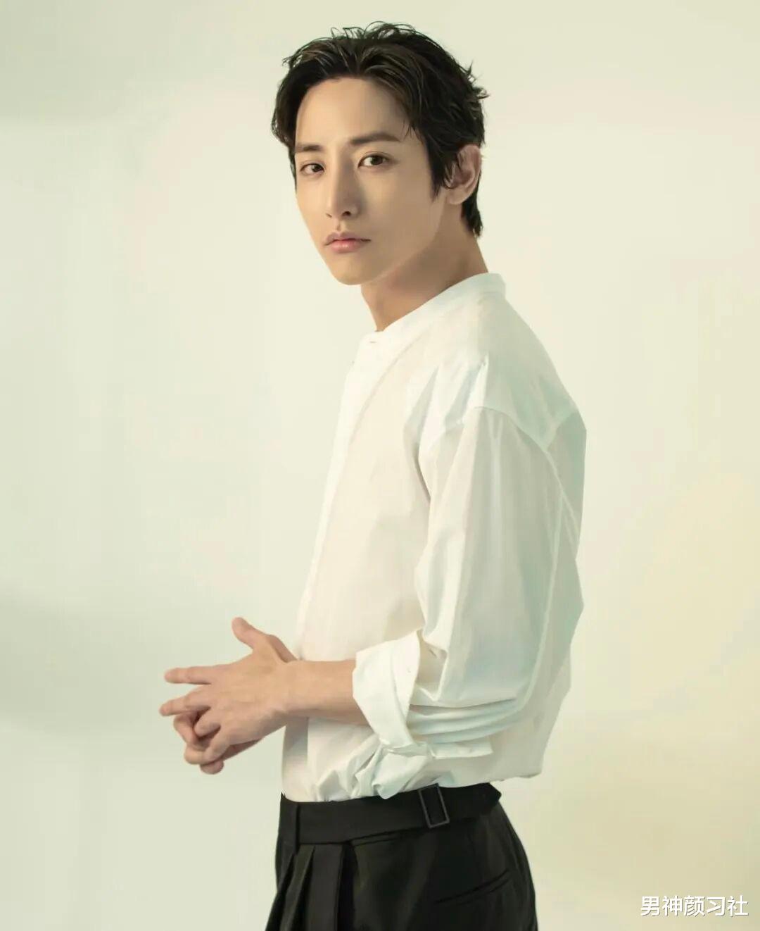 基础款的白衬衫,也很衬他的气质。可以像他一样,搭配黑裤子,营造毫不费力的一身,把全身的松弛感给拉满。衣服最好选择稍微柔软一点的,更能显得你整个人比较温柔。