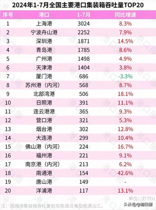 中国集装箱吞吐量最大港口TOP20排名见附图。孰大孰小一看便知。