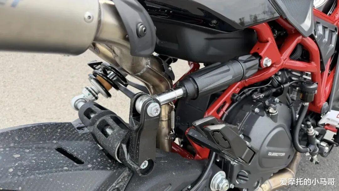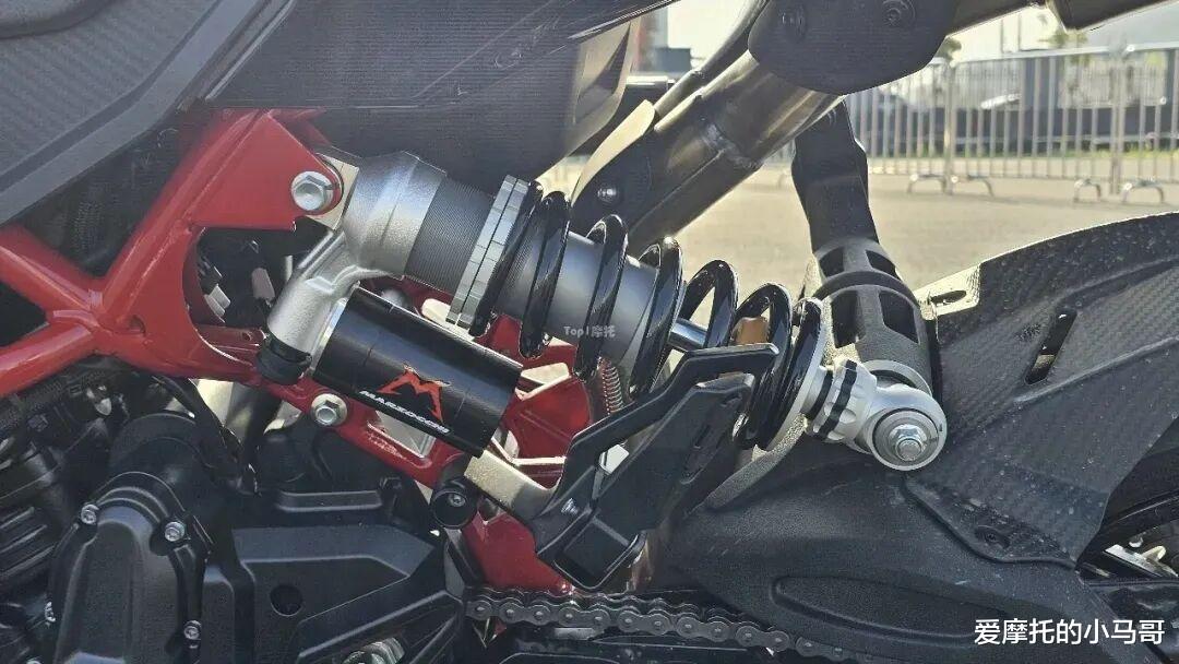 先看减震,直接上了MARZOCCHI马祖奇的倒置前叉,后减震也支持预载可调。这套减震组合,不管是市区过减速带的滤震舒适性,还是跑山过弯的支撑性,都能给你拉满,不用后期自己花钱升级。