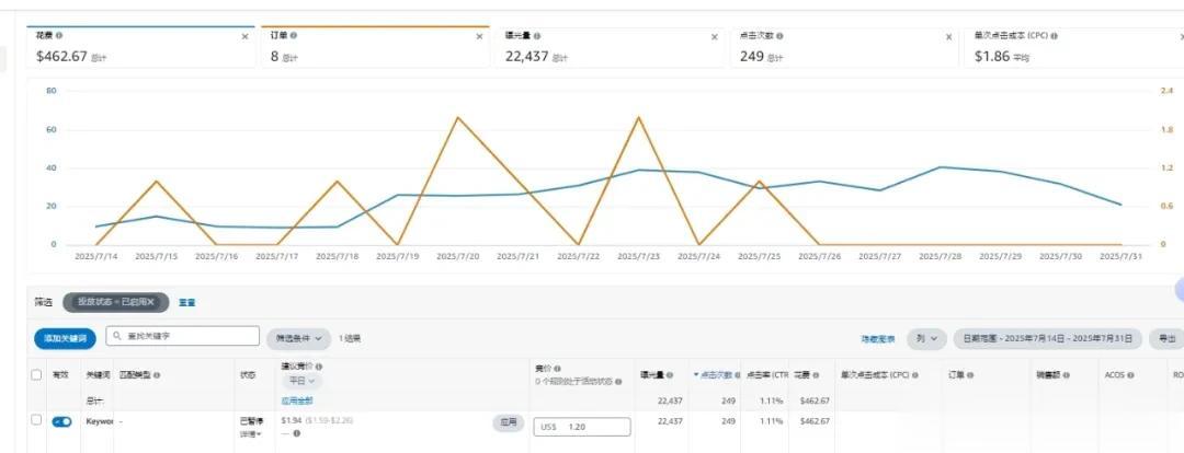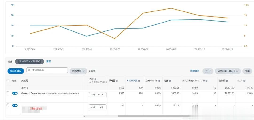 7天拿到了27单,而且ACOS在23.54%,还非常不错。
