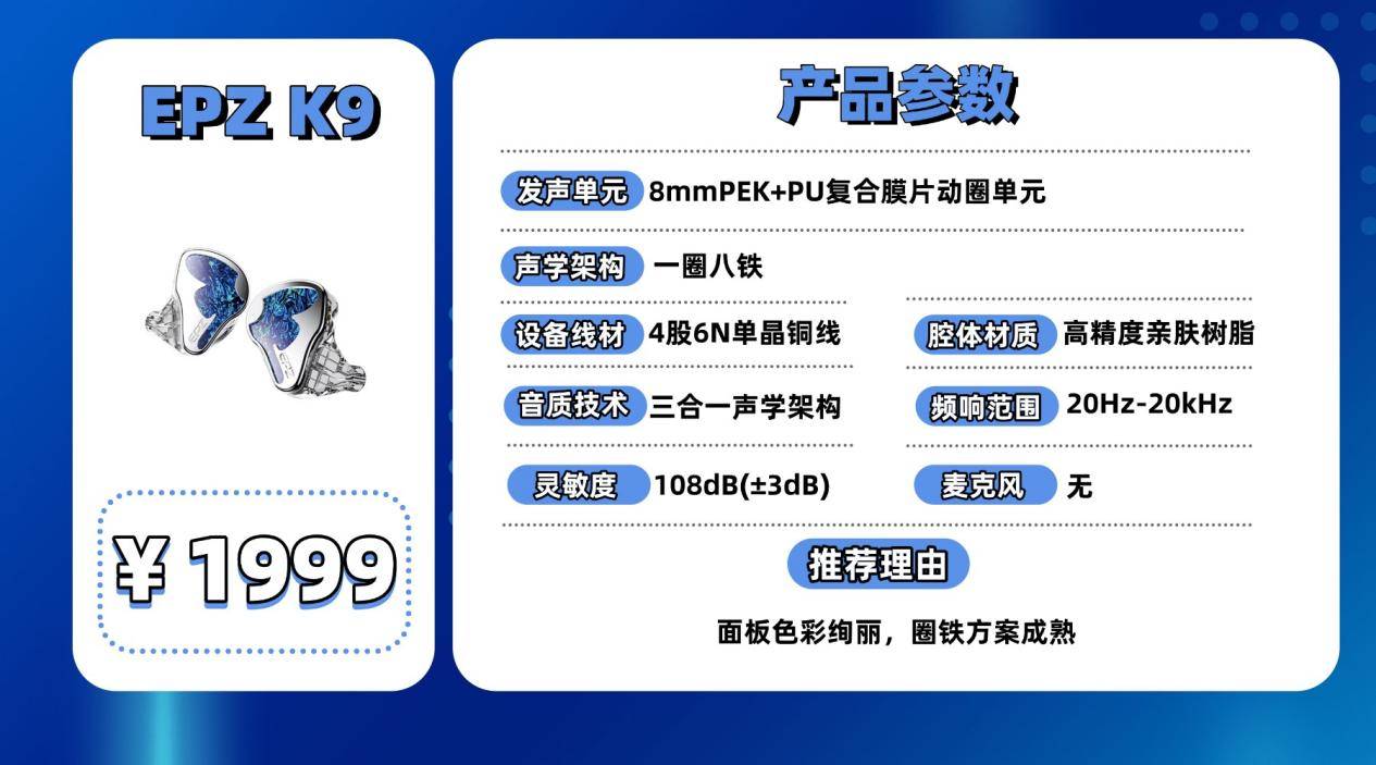 声音走向偏向解析取向。一圈八铁的配置在信息量和层次感上确实有优势,高频的亮度和延伸较为突出,细节呈现清楚,器乐线条分明。中低频量感控制相对克制,整体风格不算温厚,属于偏理性、偏清爽的类型。对前端和耳套搭配有一定依赖,如果搭配不当,部分曲目可能会显得略紧,需要稍作调整才能获得更耐听的平衡感。外观方面,手工烧箔面板结合 CNC 金属工艺,在不同光线下辨识度较高。随机附带的 6N 单晶铜线规格扎实,接口稳固,支持后期更换。树脂与金属衔接处通透度存在轻微差异,是整体完成度上的小缺点。总体来看,K9 更适合注重解析与风格个性的用户,对声音调校有一定耐心的人会更容易接受。