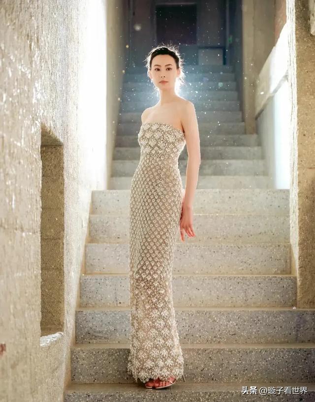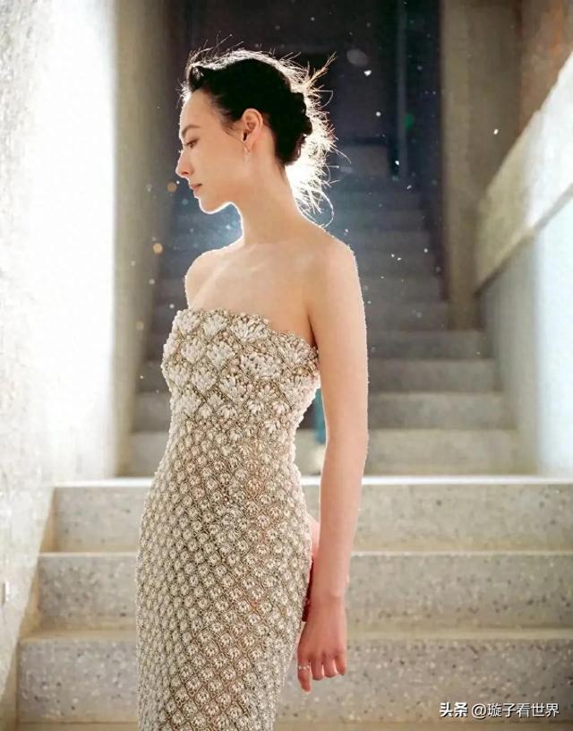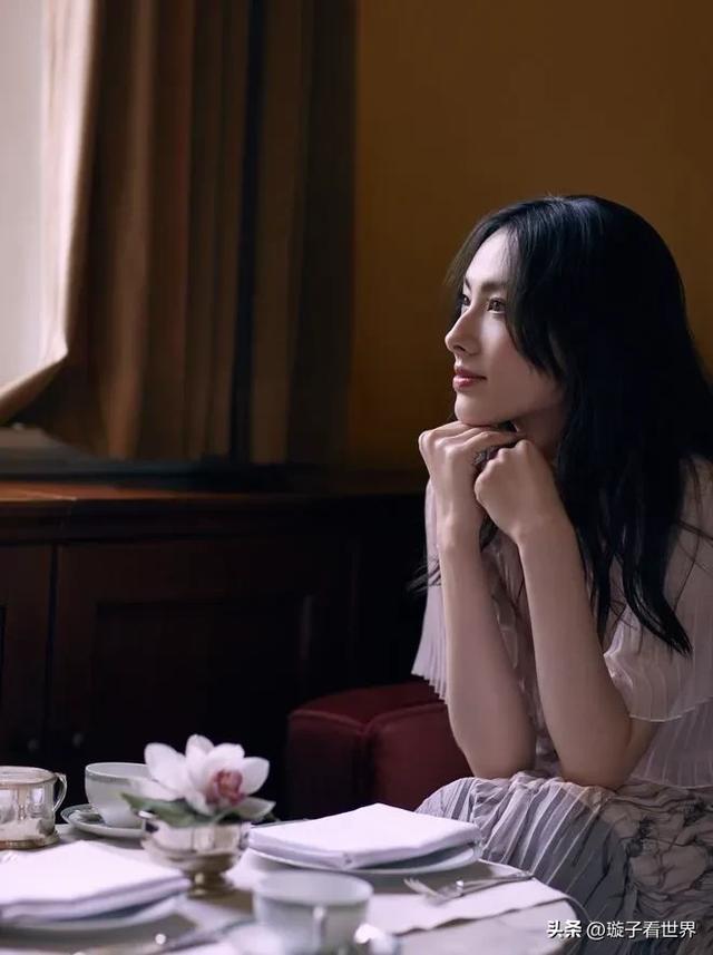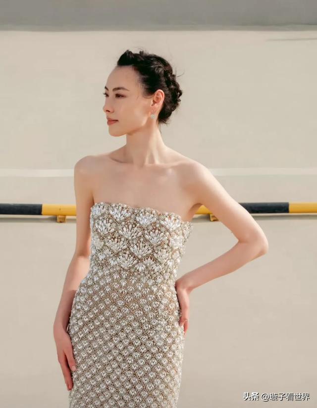 照片中的她身着咖色一字肩礼裙,眉目疏冷如画,骨相优越的“高级脸”被网友称为“岁月不败的港风美人”。
