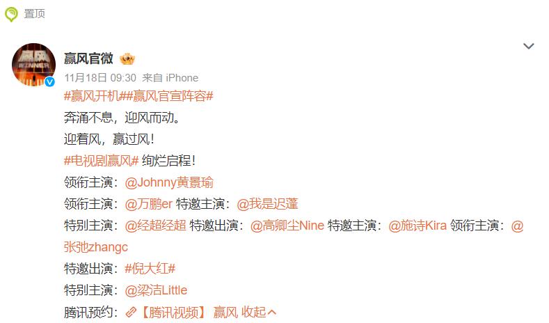 我们可以发现,《赢风》的题材是非常好的,为我们展现民营快递企业的改革发展之路,如果剧情在线,确实会吸引网友们的关注。从官方官宣的主演阵容上看,男主演卢云翔由黄景瑜饰演,女主角由万鹏饰演,从官方官宣的方式上看,这部剧是一部大男主剧。
