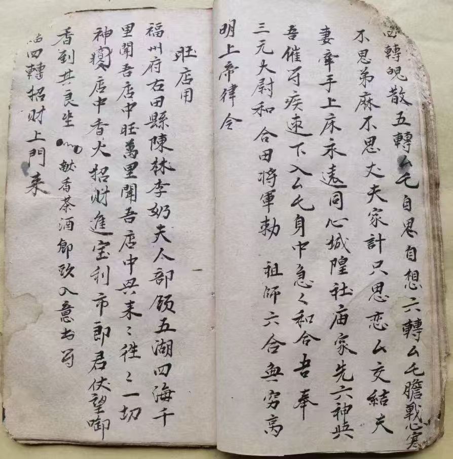 0 筒子页的篇幅虽精炼,却完整覆盖 “仪式、符咒、旺店” 三重核心。仪式层面,大概率收录针对店铺的专属仪轨,比如开店祈福流程、定期 “断献”(酬神供奉)步骤,每一步都贴合道教仪式的神圣性与程序性;符咒层面,聚焦 “和合符”“旺店符”“招财符” 等实用符箓,甚至可能包含绘制方法、使用时机与念诵口诀,让 “符” 与 “用” 形成闭环;而 “和合旺店” 的内容,则将仪式与符咒落地到经营实处,教人防矛盾、聚人气、促营收,既守道教文化内核,又满生活实用需求。
