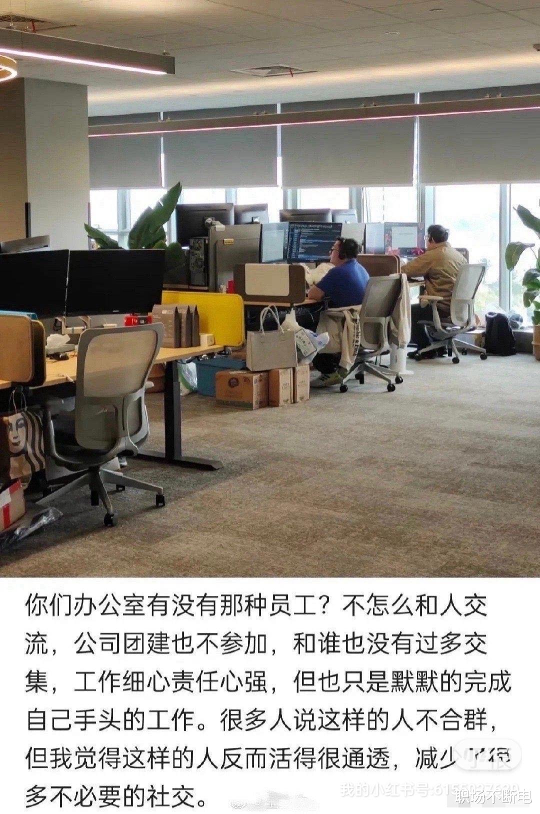 最近网上有一个人贴了一张图,里面的大意是办公室是否有这样的员工:和同事之间并没有太多交集,不合群,不怎么交流也不出去团建,工作细心责任心强,默默完成手头工作。网友就说这种人如果公司一旦涉及裁员,首先会裁掉的就是这一波人。