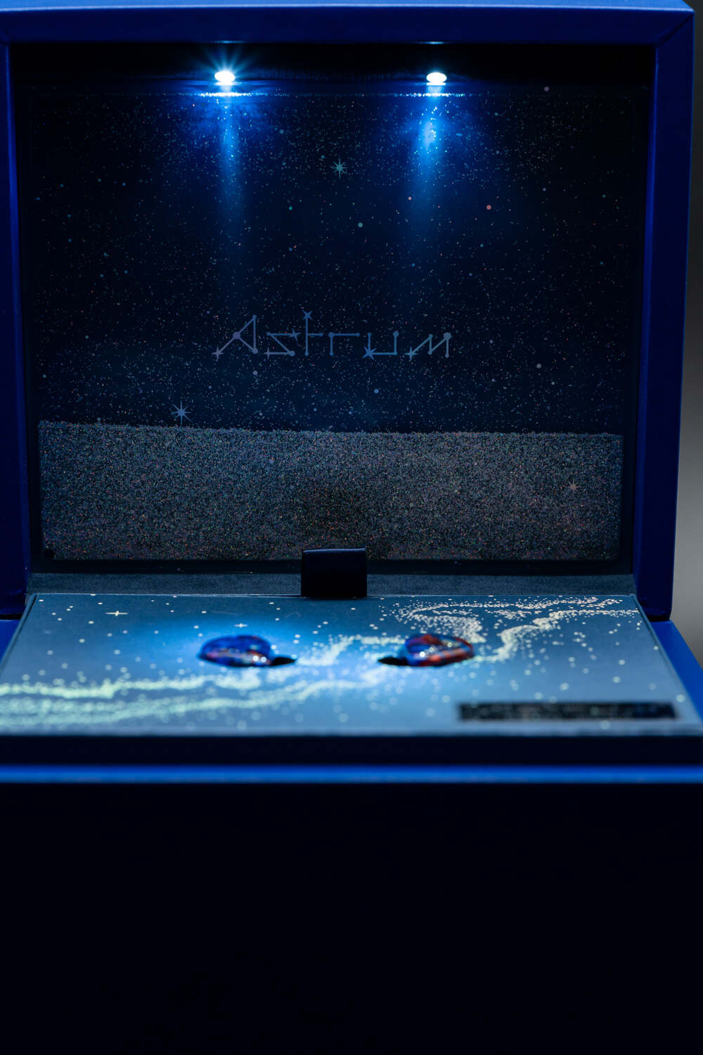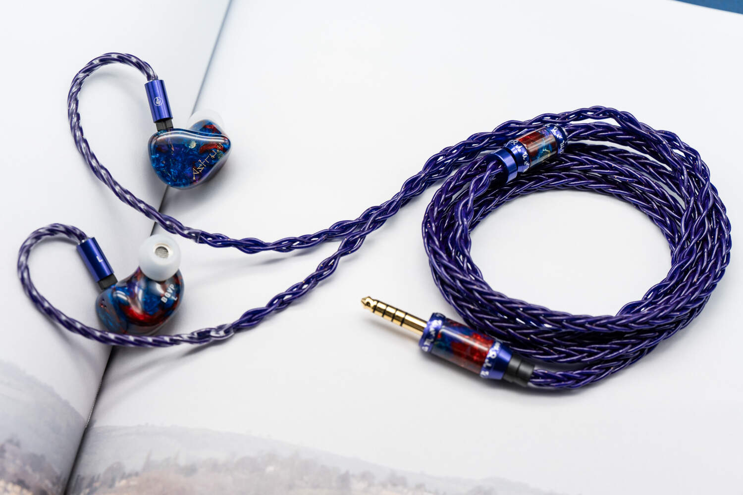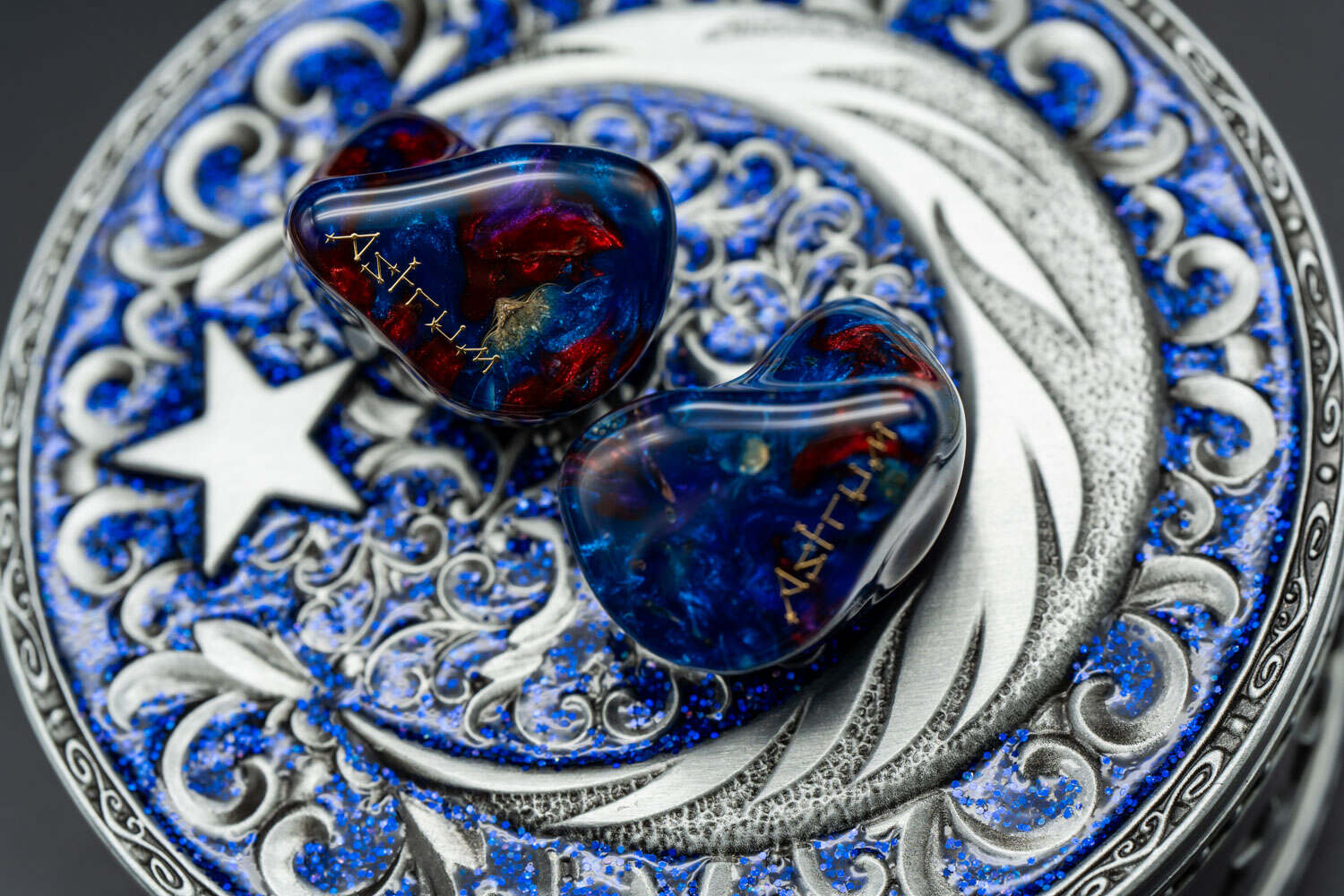 星河的面板首先第一印象就抓住了很多人的眼球:深蓝与红色的大面积不规则纹理与色块交织,形成自然流畅且与众不同的视觉观感;漂亮的方形包装盒,开启后如同化妆盒般,内含精细的“流沙”设计,配合立体感的Logo有“水落石出”之感;而星河的锌合金立体星月工艺收纳盒也为这款产品增色不少。除此以外,星河的线材外皮色调和五金的设计也与“星河”的主题有所呼应。总的来说,星河从包装到配件再到耳机本体,都呈现出一种近似艺术品般的气质,这在入耳耳机,尤其是定价不足5k的耳机中是很少见的。
