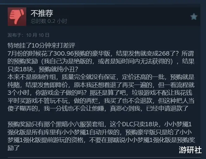 高达178元的标准版定价,游戏流程却仅为3-5小时,再加上豪华版首发降价,成功又惹怒了一批首发预购的核心粉丝。