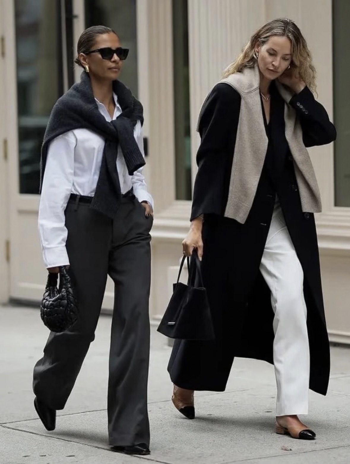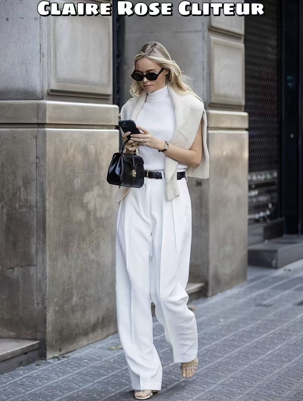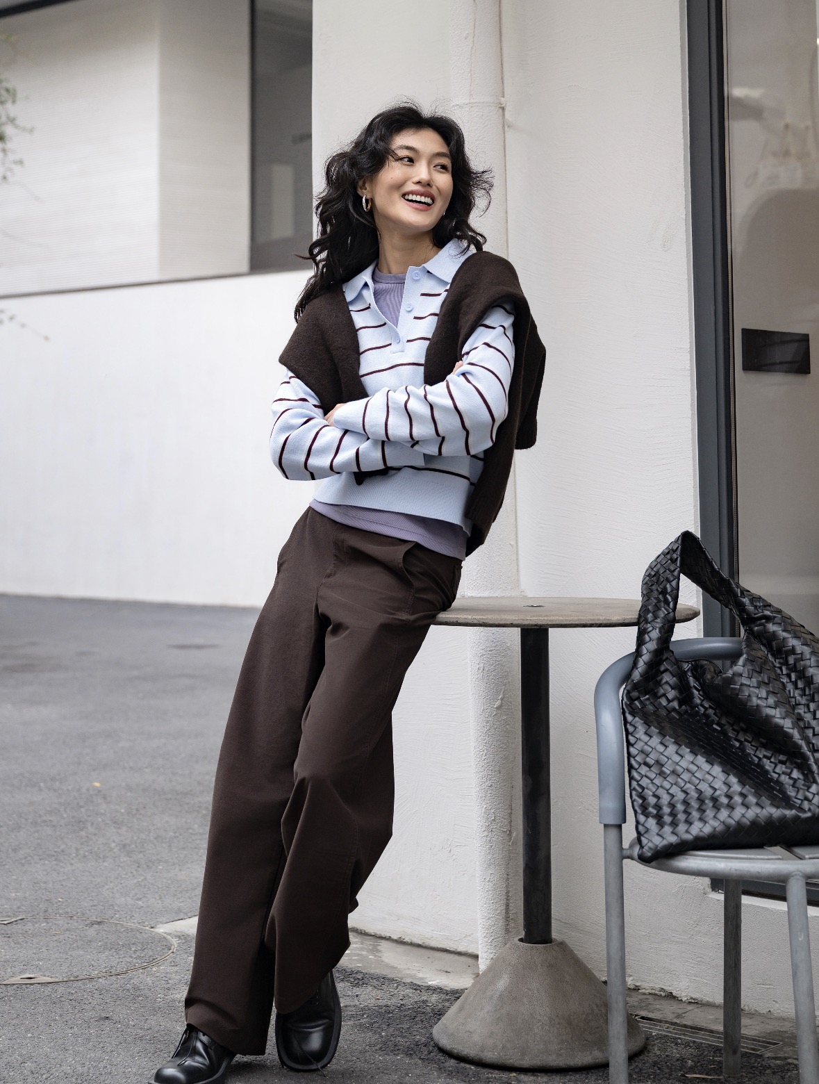 造型建议:当你穿一身优雅的套装裙或利落的西装时,用一件针织毛衣在肩头做不对称系法,那份刚柔并济的品味立刻就出来了。它能完美平衡掉基础款穿搭的“寡淡”,即使搭配气场强大的高腰喇叭裤,也完全撑得住场面。