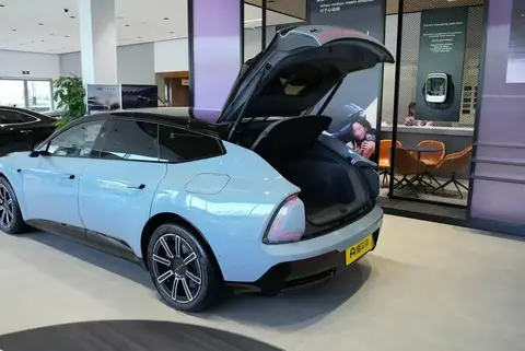 车身侧面的设计更是长在审美点上:无框车门搭配隐藏式门把手,线条流畅得不像话,风阻系数低到0.252Cd,不仅好看还能帮着省续航。标配的20英寸多辐条铝合金轮毂,搭配前245/45 R19、后285/40 R19的“鸳鸯胎”,视觉冲击力超强,宽宽的后胎看着就稳,跑起来也能提供更好的抓地力。溜背造型从车顶一直延伸到车尾,没有一丝多余的线条,既保留了轿跑的运动感,又兼顾了旅行车的实用属性,不像有些溜背车那样显得突兀。车尾的贯穿式LED尾灯和前脸呼应,灯光点亮后是渐变效果,细腻又高级。电动扰流板在高速行驶时会自行升起,不仅好看,还能优化空气动力学。