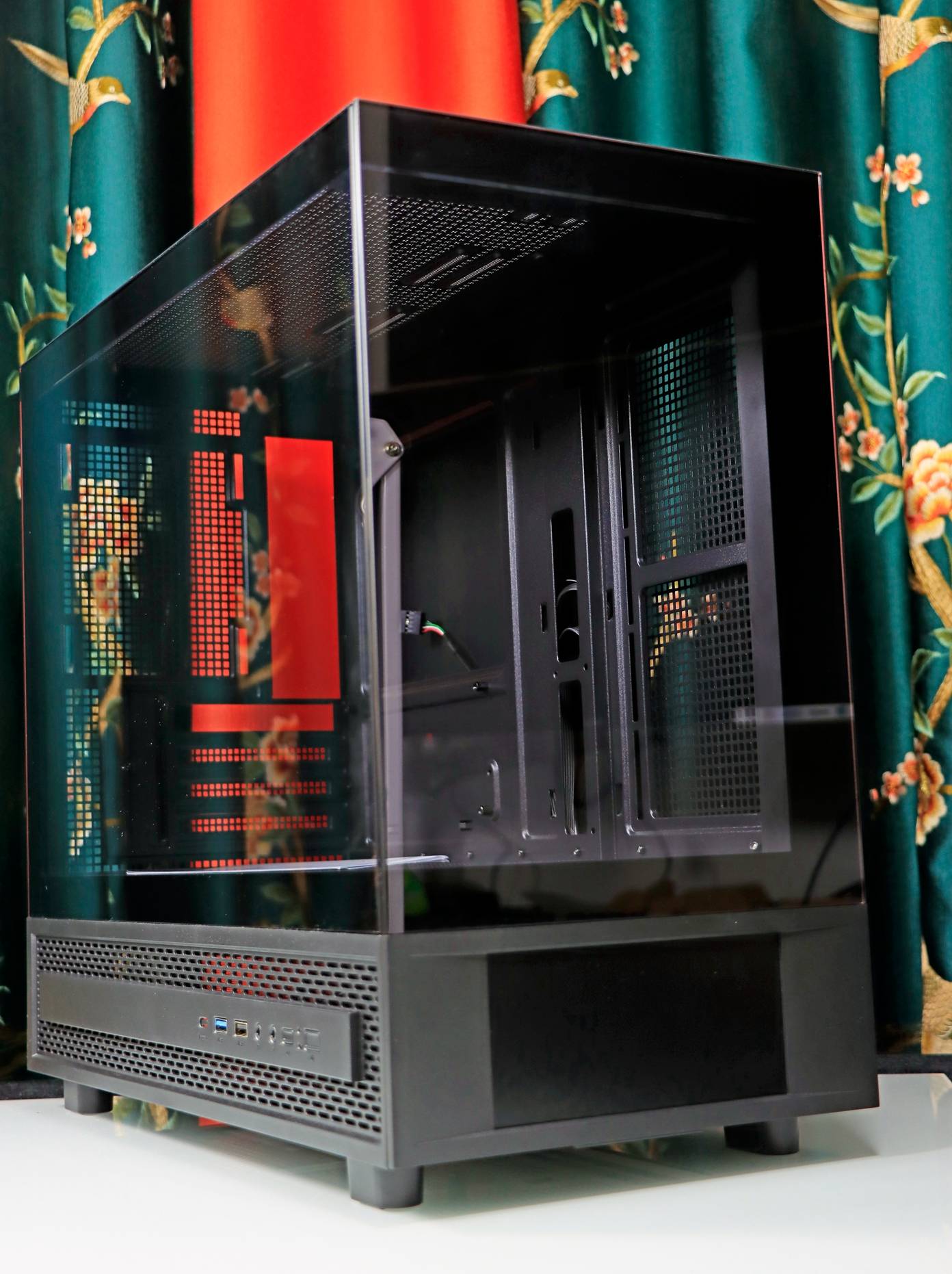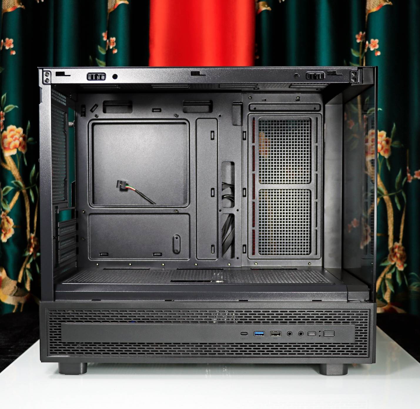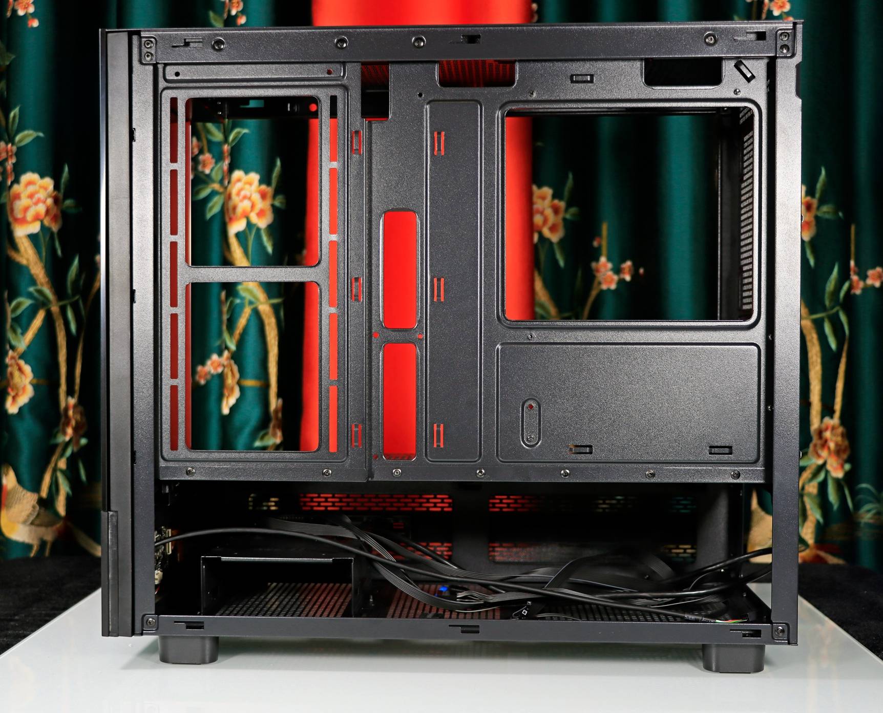 ▲ 机箱的五金架构优秀。主板设计十分合理,在 MATX 机箱的尺寸上做到了 MATX / ITX 主板的支持,以及 ATX 标准长度电源的完美支持,以及最长 380mm 的显卡长度和 360 水冷 or 180mm 高度的风冷散热器。