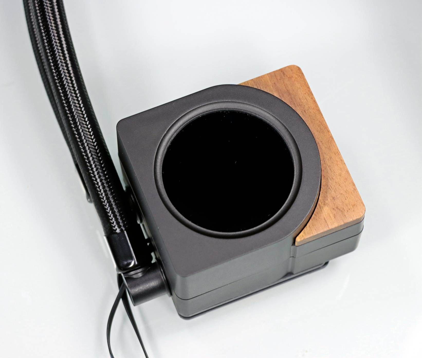 ▲ 高品质冷排与风扇都是标准的 25mm 厚度,搭配上木质纹理的水冷头与 LCD,别有一番风味。