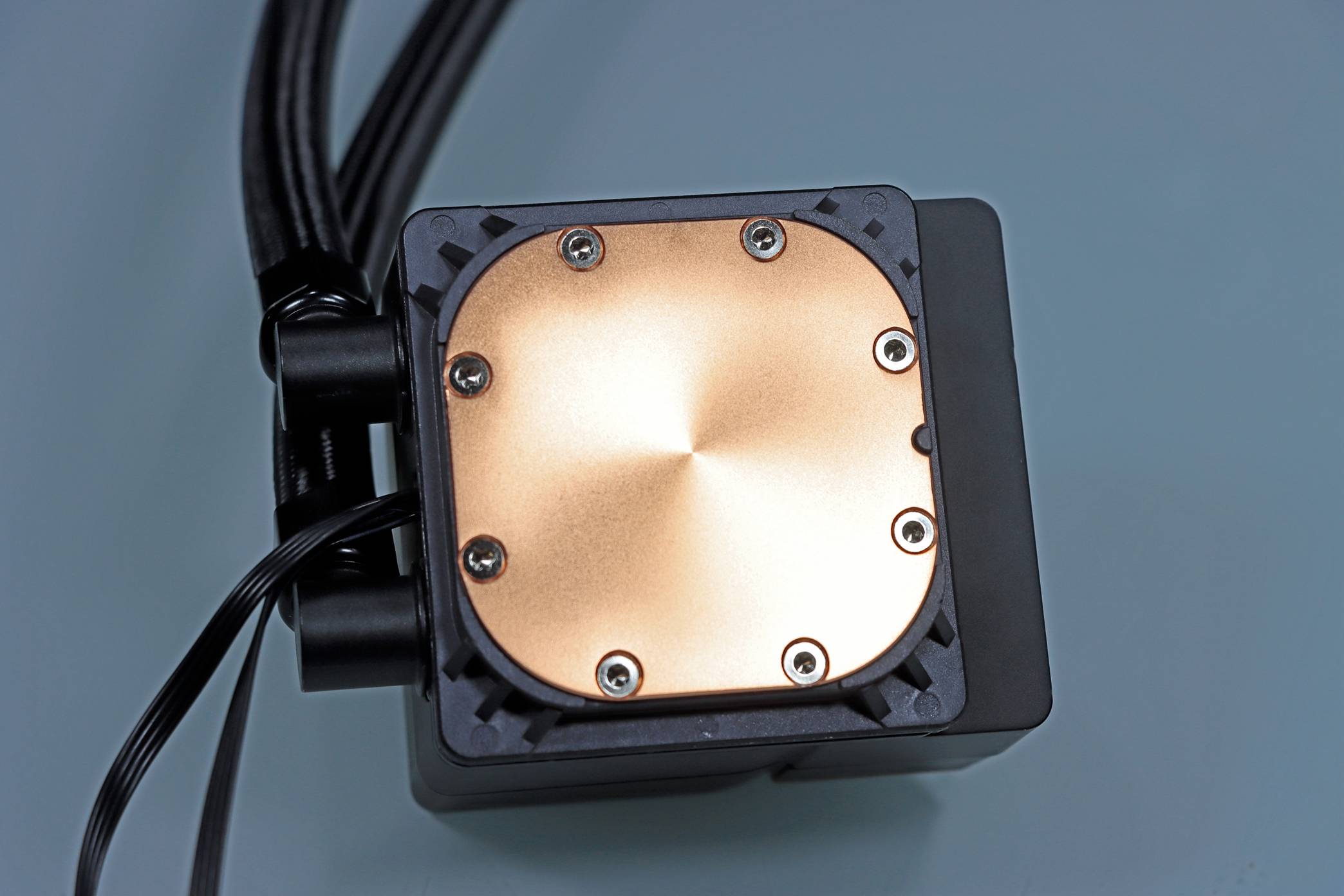 ▲ 水冷采用大面积高效能铜底板,可以实现加速热传导,让 CPU 的热量快速散发出去。