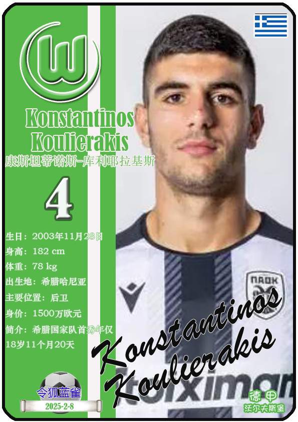 德甲沃尔夫斯堡足球俱乐部成立于1945年9月12日,距今已有80年历史。截至2025年10月8日,球队主教练是保罗-西蒙尼斯,队内拥有球员洛夫罗-马耶尔、克里斯蒂安-埃里克森、斯科夫-奥尔森等。本期以球星卡的形式展示目前德甲沃尔夫斯堡足球俱乐部的21名球员(按球衣号码排序):
