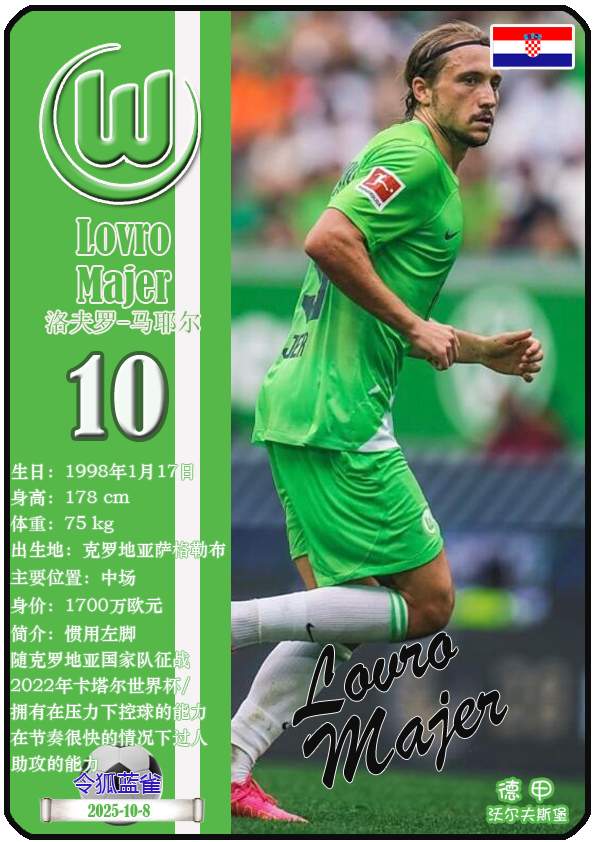 球星卡(德甲):沃尔夫斯堡足球俱乐部21人一览(25/26赛季)