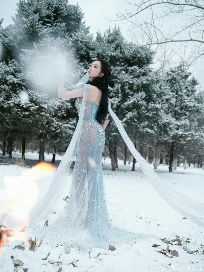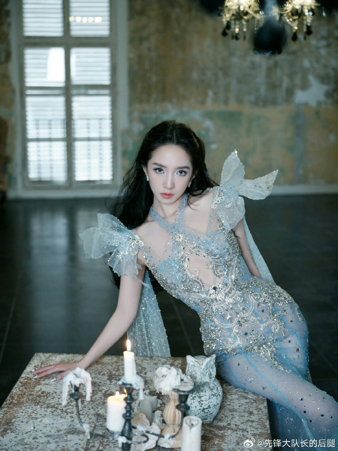 孟美岐一袭浅蓝鎏光纱裙亮相,把 “仙气流” 和 “贵气感” 织成了红毯焦点。薄纱裙身缀满碎钻与珠绣,像把银河揉进了裙褶里,胸前镂空与腰际雕花又添了几分柔媚的张力;肩处的透纱飞袖轻扬,衬得肩颈线条清瘦又灵动,连耳饰的碎钻都和裙身流光呼应。