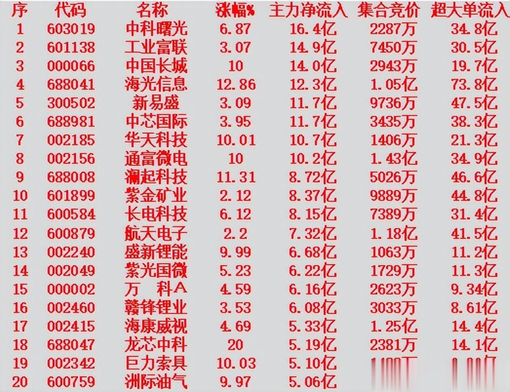 序 代码 名称 涨幅%