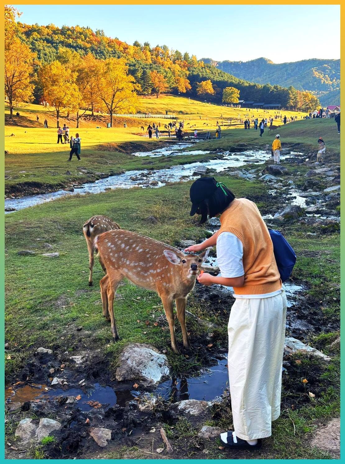 秋天的小溪水特别清。鹿会走到水边喝水,水面倒映着金黄的树影。你要是喜欢拍照,随便一拍都能当朋友圈封面。人和鹿安静地靠在一起,有种说不出的温柔。