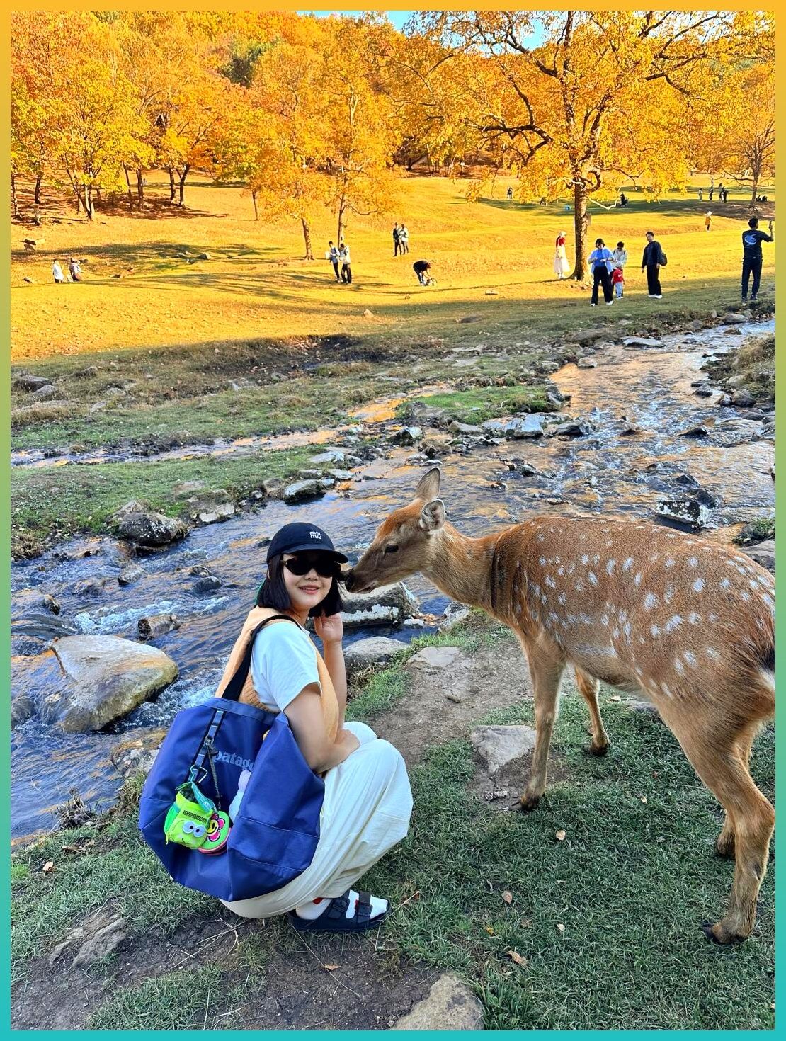 🍁林子里随处可见梅花鹿。你只要稍微弯下身,递出手心的饲料,鹿就会自己凑过来。有时候还会悄悄用鼻子蹭你,像是撒娇的小孩。那种被信任的感觉,真的有点暖心。