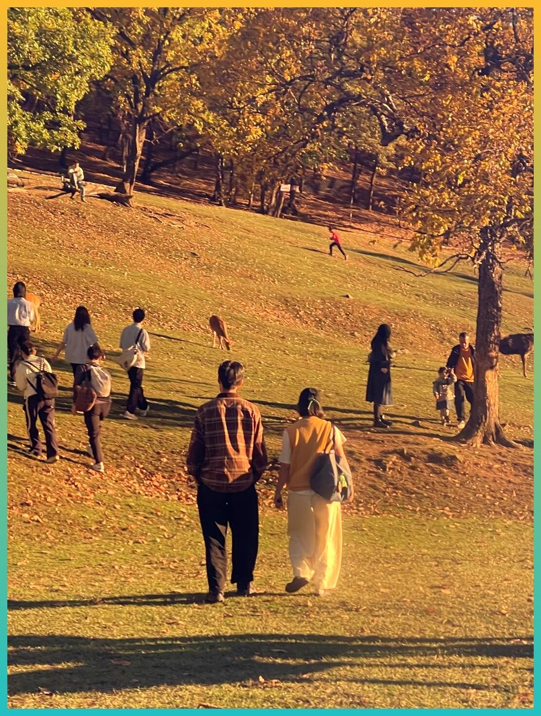 其实这里的氛围很松弛,不管你是和爸妈一起来,还是和朋友成群结队,亦或带着小孩、甚至宠物狗,都不会觉得累。草地特别大,随便铺个野餐垫,直接坐下开吃。小孩子在一边追鹿,大人聊天,空气里满是幸福的味道。