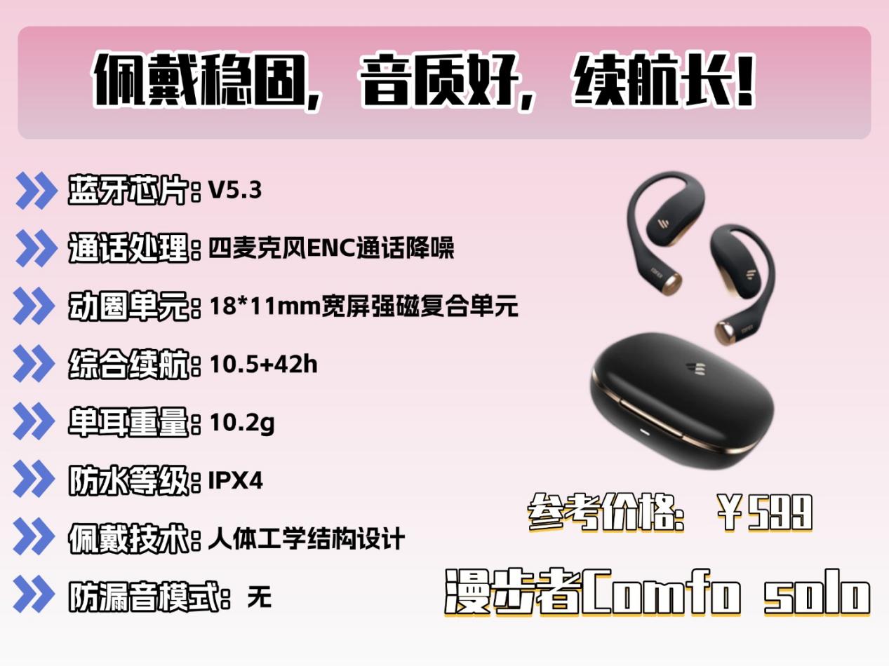 漫步者 Comfo solo价格:599 元推荐程度:★★★★推荐理由:适合音乐爱好者的中端机型