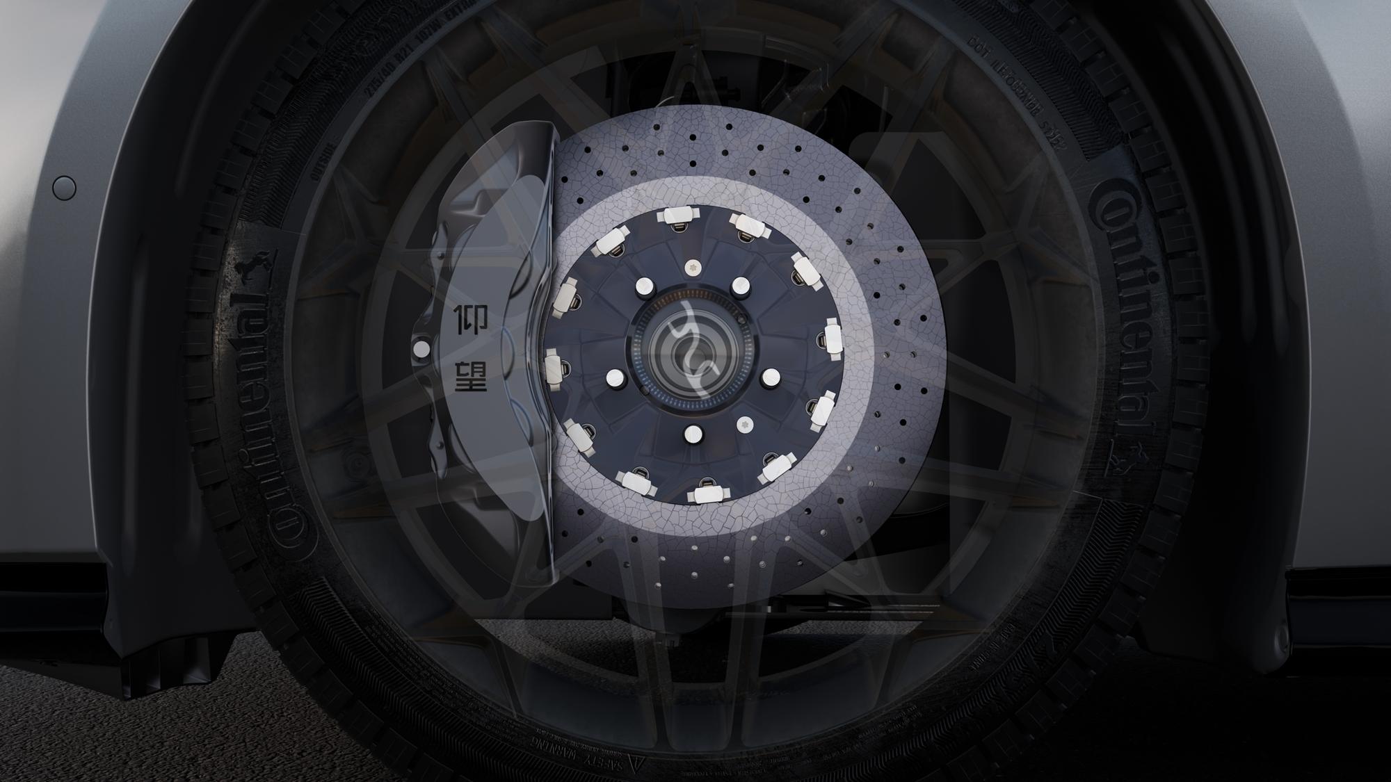 极致的灵动,必须建立在极致的安全之上。仰望U7的“操控哲学”里,安全不是被动防御,而是主动构筑的信任屏障。它有一身“硬功夫”。比如,碳陶刹车系统,配合超跑同源的热管理系统,让这台性能猛兽能刹得稳、刹得准,连续激烈驾驶后依然保持稳定的制动力。