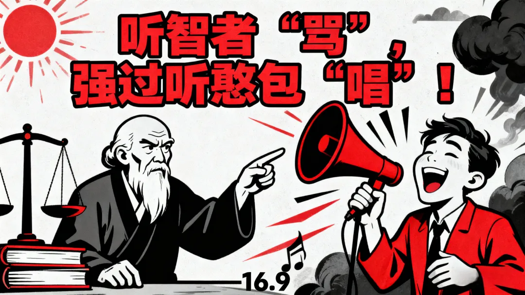 各位老铁,今儿个摆个龙门阵,讲句老祖宗传下来嘞硬道理:“听智慧人的责备,强如听愚昧人的歌唱。” 这话搁到我们万盛,就是—— 听智者嘞“骂”(指正),比听憨包嘞“唱”(吹捧)安逸得多!