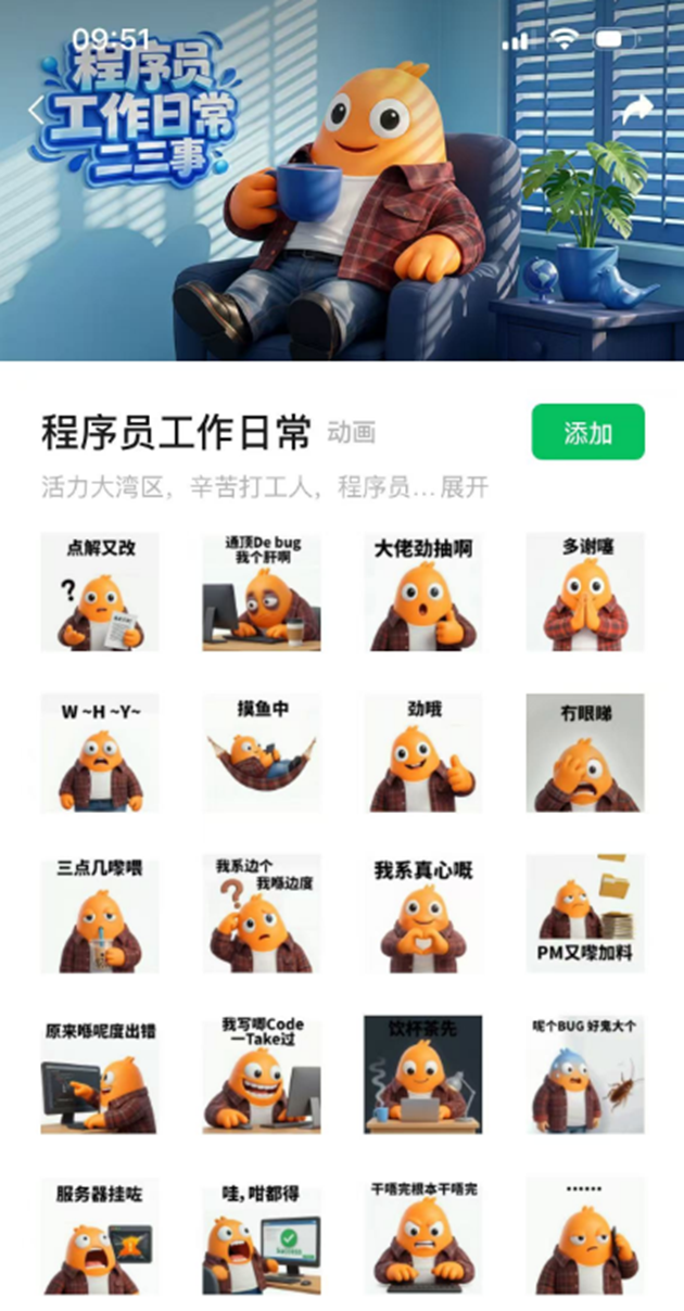 这套表情包简直是大湾区程序员的真实写照!Boby 换上了经典的格子衬衫,手拿咖啡,精准还原了咱们的搬砖日常: