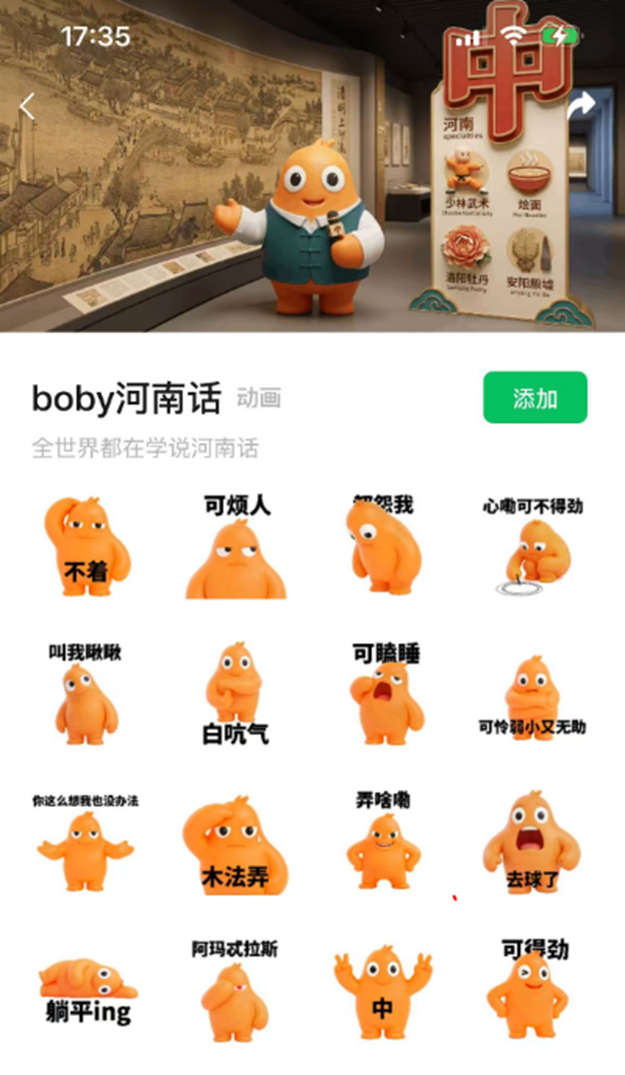 文化底蕴: 背景里藏着少林武术、洛阳牡丹和烩面,这波跨界联动,让 Boby 的憨厚形象瞬间拉满。