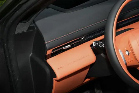 空间表现方面,这款车型的表现堪称均衡,完全能够满足家庭日常出行与长途自驾的需求。我们邀请了一位身高 183cm 的体验者进行实测,调整主驾驶位座椅(支持电动调节,包含前后移动、靠背角度、高低调节及腰部调节)至舒适坐姿后,头部空间剩余一拳一指,腿部空间十分充裕,即便长时间驾驶也不会感到局促。保持主驾驶位不变,体验者移至后排,头部空间约有一拳,腿部空间则达到两拳半,这样的表现对于身高较高的乘客来说也足够友好,后排中央地板凸起较小,不会过多影响中间乘客的腿部放置,三人同行时也能保证一定的舒适性。储物空间设计贴心实用,前排中央扶手箱容积可观,可容纳手机、平板电脑等物品,前后排门板储物槽能轻松放入水瓶与杂物,前排杯架与后排杯架的配置满足了乘客的日常需求。行李舱常规容积为 485L,可轻松容纳 3 个大号行李箱,当后排座椅按照 40:60 比例放倒后,容积可扩展至 1425L,再加上前部 125L 的额外行李舱,无论是露营装备、婴儿车还是大件物品,都能轻松装载,储物灵活性相当不错。此外,整车整备质量为 2055kg,满载质量 2485kg,合理的重量分配也为行驶稳定性与空间利用奠定了基础。