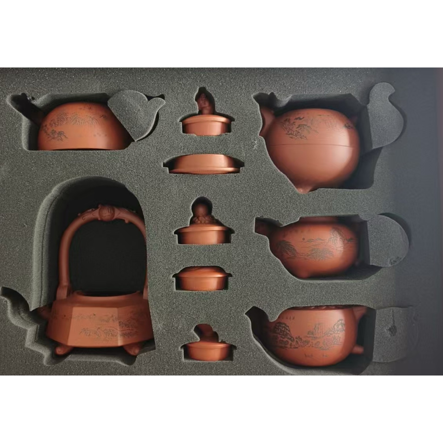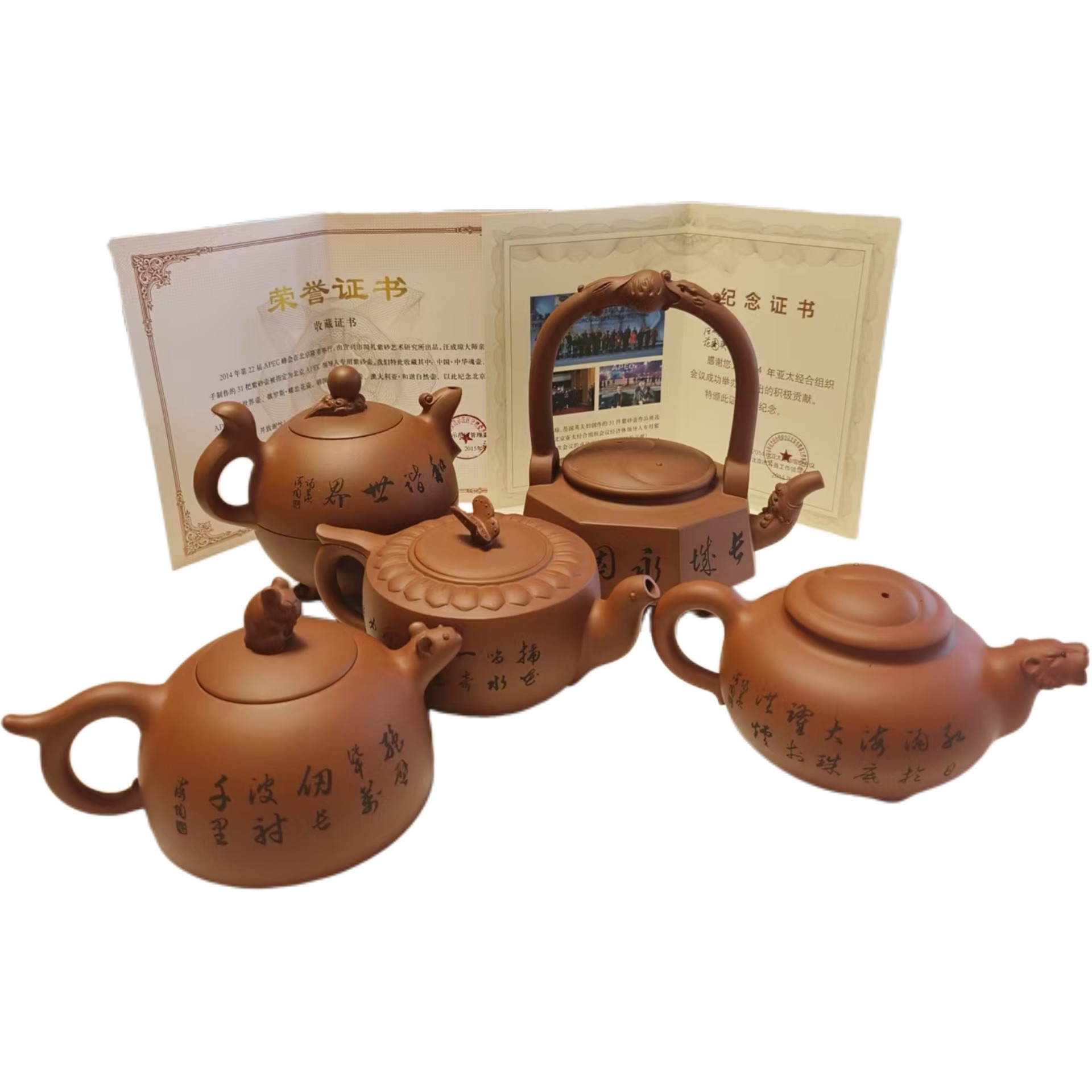 四、收藏价值:独具特色的艺术藏品(一)作品的独特性与稀缺性太平王壶作为一套具有独特文化内涵与艺术价值的紫砂茶具,具有很强的独特性。每套壶的造型、装饰都可能存在差异,且是由工匠精心制作而成,具有唯一性。同时,由于紫砂泥料的有限性以及手工制壶的复杂性,太平王壶的产量相对有限,具有一定的稀缺性。这种独特性与稀缺性,使得太平王壶在收藏市场上具有较高的吸引力,成为收藏爱好者追捧的对象。