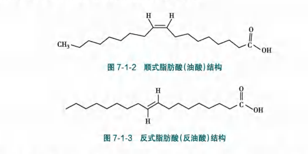 反式脂肪酸(trans fatty acid,TFA)是含有反式非共轭双键结构的不饱和脂肪酸的总称。即双键上的氢原子连在碳原子的两侧,碳链以直链形式构成空间结构,成为顺式脂肪酸的几何异构化分子。