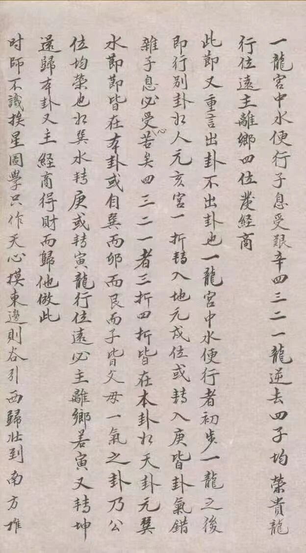 尤为难得的是,此书兼具理论深度与实操细节:既阐释 “雌雄交媾”“关天关地定雌雄” 的玄空核心法理,又提供 “掌上寻天卦”“地卦山水相对” 的具体技法,如 “天卦从向论水神旺墓,地卦从龙论山水生死”,搭配图文注解让后学可按图索骥。112 页全本无删改残缺,字迹工整,部分页面保留历代藏家手批,书中收录的挨星图、排龙图等皆为秘传样式,区别于后世复刻本的生硬照搬,原汁原味呈现清代玄空风水的实战智慧。
