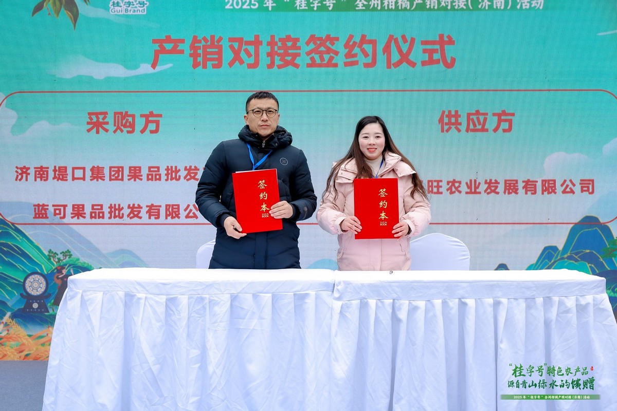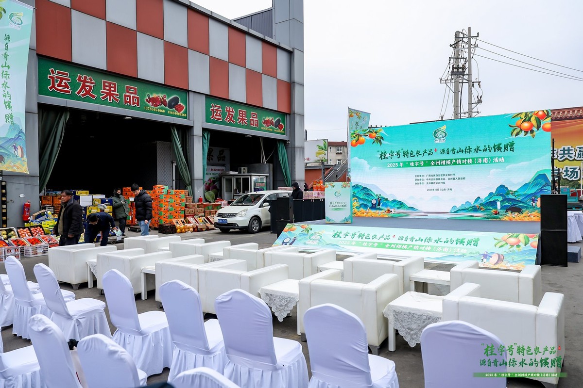 12月12日,由广西壮族自治区农业农村厅主办,中共全州县委、全州县人民政府承办的2025年“桂字号”农产品桂林市全州县产销对接(济南)活动,在山东省济南市成功举行。本次活动旨在深化桂鲁农业合作,将来自“广西北大门”的优质特色农产品,特别是享誉已久的“全州柑橘”,精准引入华北市场,活动取得了丰硕成果,线上线下签约1.6亿元。