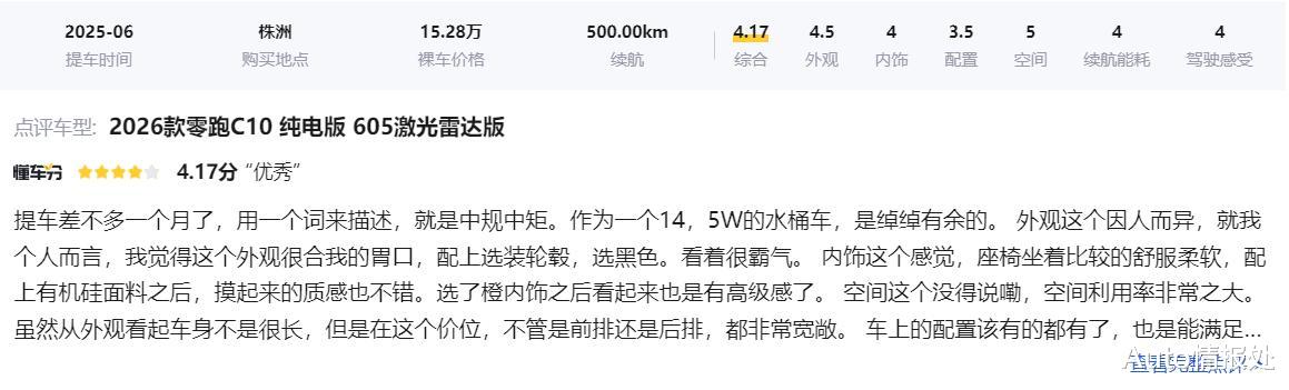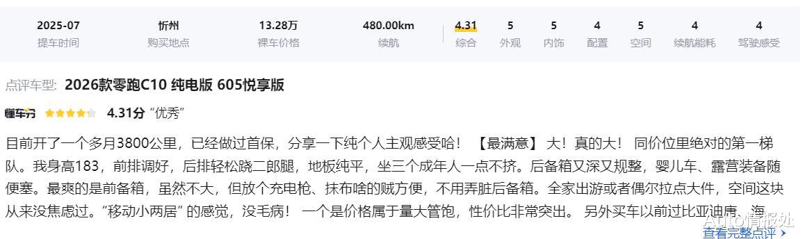 一台车到底怎么样?光说是没有用的,毕竟消费者的口碑才是真实的用车体验,零跑C10在同级别车型当中,各方面的口碑都是比较出色,消费者认为C10的空间表现出色,驾驶体验良好,内饰好看,配置丰富,标配即满配,续航优秀,后排空间大,那么C10是怎么做到的那?