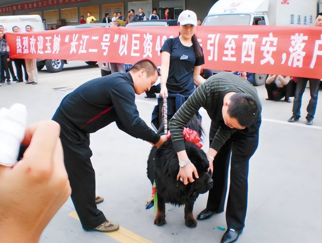 藏獒热的巅峰出现在2009年,当时陕西西安有一个老板,从青海引进“獒王”一条,名为“长江2号”。此獒王身价400万,是从青海玉树买来的种公犬,买主叫蔡国强,是西安盛大獒园的老板。