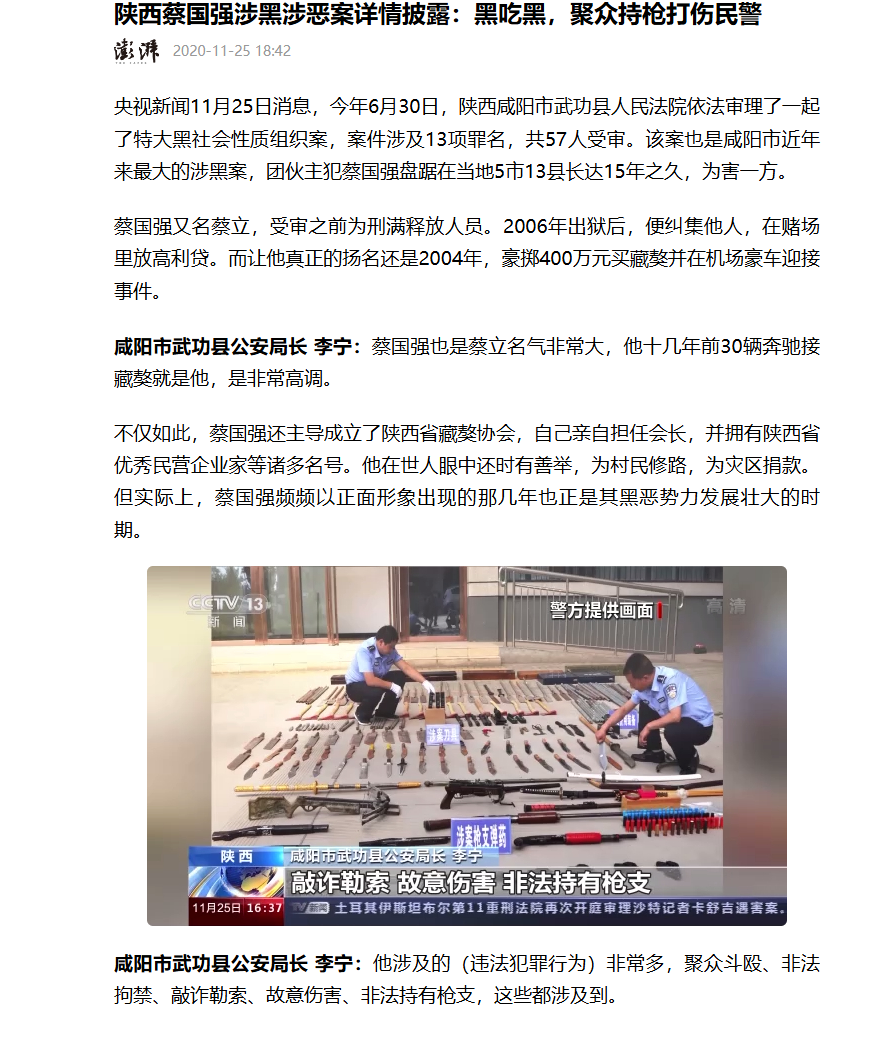 1.《陕西蔡国强涉黑涉恶案详情披露:黑吃黑,聚众持枪打伤民警》,佚名